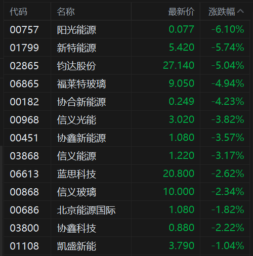 资讯 港股光伏股继续走低,福莱特玻璃跌6.04%