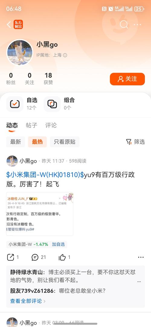 $小米集团-W(HK|01810)$恭喜米粉,娟儿已经开始股吧管理了,相信市值管理不远了。注册一天的号,发了十几个帖子唱多