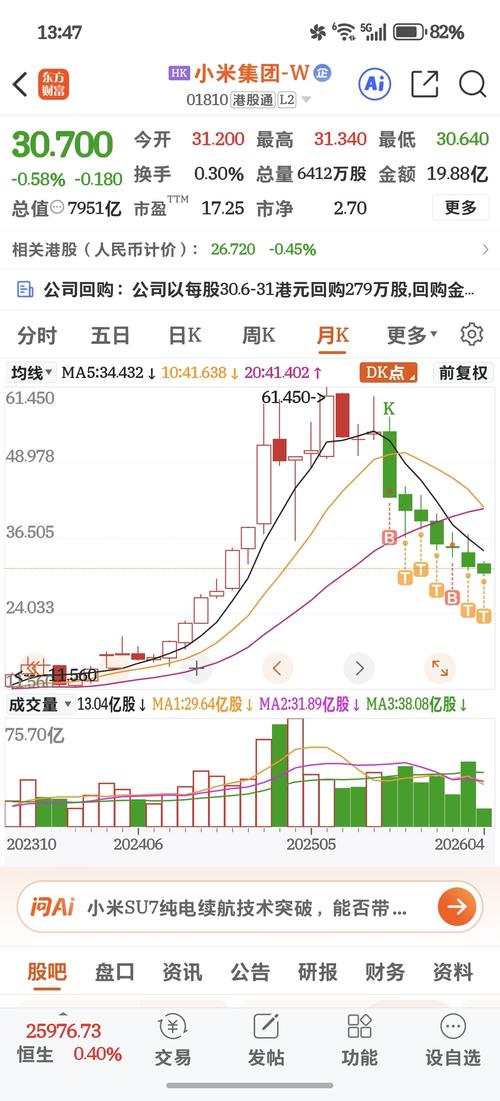 $小米集团-W(HK|01810)$月线七连阴 何时是个头
