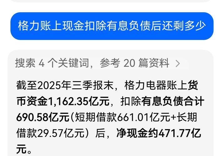 $格力电器(SZ000651)$$海信家电(SZ000921)$$小米集团-W(HK|01810)$格力现金远没有格里芬们吹的多,减去有息负债后净现金471亿,再减去格力钛240亿负债后还剩多少?无风不起浪也难怪董明珠好几次放出风声说不分红了。