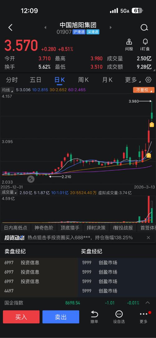 $中国旭阳集团(HK|01907)$没辙,熬着吧,海峡封锁是3月,第一季度营收已有一部分,只要是季度报达到2亿,全年利润上来,大幅拉高PE,就是主升浪!机构再等,正好底部吸筹!每下跌5个点加仓10万。这样年底不止回本还能赚50%。不要频繁换股,港股换股就是输的惨!从今天开始删除app!只股吧看一眼,如继续下跌,第二天加仓!涨不卖,立帖为证!