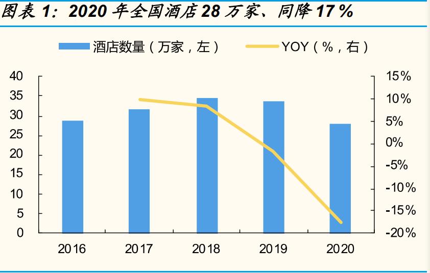 (报告出品方/作者:国金证券,李敬雷、叶思嘉)1、疫情加速连锁化进程,行业集中度提升趋势明确1.1、短期:供给去化、连锁化提速,一旦复苏龙头将更为受益行业供给深度出清为复苏奠定弹性基础。疫情对酒店经营冲击较大,行业供给深度出清,其中以抗风险能力弱的非连锁单体、中小规模酒店为主;21年疫情反复震荡,酒店经营持续承压,酒店投资谨慎,供给出清延续。2020年国内酒店存量出现历史性下滑,酒店数量...