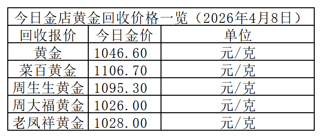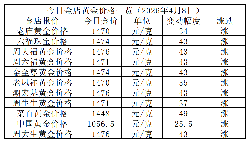 金价强势反攻!2026年4月8日国内品牌金店价格速递!