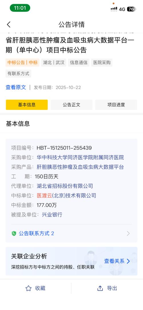 $医渡科技(HK|02158)$又中了177万元的合同。