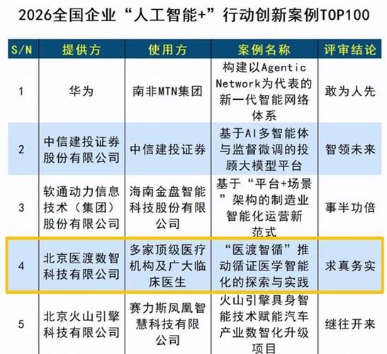 医渡科技“智循”入选“全国企业人工智能+行动创新案例”,唯一上榜医学循证AI 近日,“2026全国企业‘人工智能+’行动创新案例TOP100”榜单发布,榜单覆盖智能制造、金融服务、医疗健康、数字政务等多个重点领域。医渡科技自主研发的“医渡智循”凭借在推动循证医学智能化领域的扎实实践荣登榜单,评审专家给出“求真务实”的高度评价,同时也是本次榜单中唯一上榜的医疗循证AI案例,其稀缺性与行业示范性尤为凸...