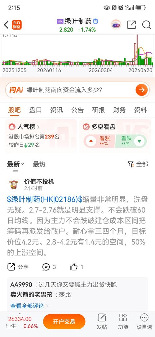 $绿叶制药(HK|02186)$这是庄股港股小盘股看成交量没用的
