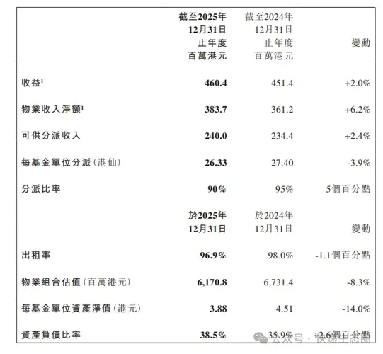 $顺丰房托(HK|02191)$3月12日,顺丰房托(02191.HK)发布截至2025年12月31日止年度业绩公告。根据公告内容,顺丰房托2025年度录得收益4.604亿港元,按年增长2.0%;物业收入净额为3.83亿港元,按年增长6.2%。可供分派收入总额上升2.4%至2.4亿港元。 顺丰房托于本年度录得除税后亏损3.323亿港元(2024年:2.945亿港元),乃主要由于投资物业的公允价值亏...
