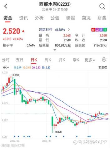 西部水泥成长逻辑生变?股价曾在两年间涨逾6倍的西部水泥(02233),短短一个多月内便遭遇凌厉的价值重估。 2026年1月28日,西部水泥股价一度攀升至3.83港元的历史新高,较2024年1月低点0.498港元,涨幅高达669%。然而,股价创出历史新高仅两个交易日后,行情便急转直下,2月2日单日大跌15.47%,上涨趋势戛然而止。 3月4日,西部水泥发布2025年业绩盈喜公告,预告全年归母净利润介...