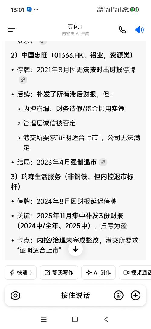深度价值投资+周期左侧埋伏+耐心持有型逆向投资 金川国际复牌前还剩下哪些手续? 法证、财报、审计全部通关,历史利空彻底出清 仅剩:内控最终报告签发→提交复牌申请→港交所快速审核 最优复牌时点:4月底/5月初内控落地→尽快方式:5/6月正式复牌,完美匹配当前伦铜13010、伦钴55950高位,存货重估+产能+周期三重利好最大化 无其他额外合规障碍、无债务/诉讼/资产冻结遗留问题.
