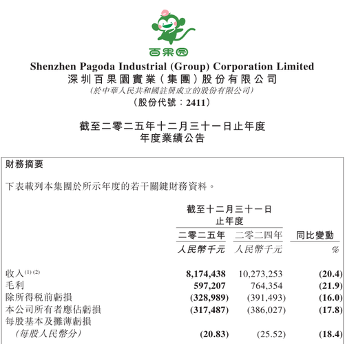 2025年营收下滑两成,加盟门店一年缩减656家,加盟模式的共生逻辑正在瓦解。 作者:静淇编辑:喻博雅 出品:零售商业财经ID:Retail-Finance 3月26日,百果园集团(02411.HK)发布2025年全年业绩公告,这是其登陆港交所后连续第二个完整财年亏损。 公告显示,2025年百果园实现营业收入81.74亿元,同比下滑20.4%;归属于公司所有者的净亏损3.17亿元,较2024年3....