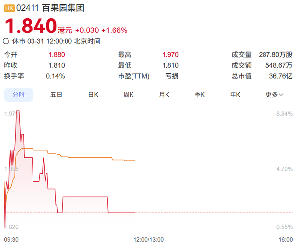 格隆汇3月31日丨百果园集团(02411.HK)发布公告,2026年3月31日耗资35.96万港元回购19.55万股,回购价格每股1.83-1.84港元。