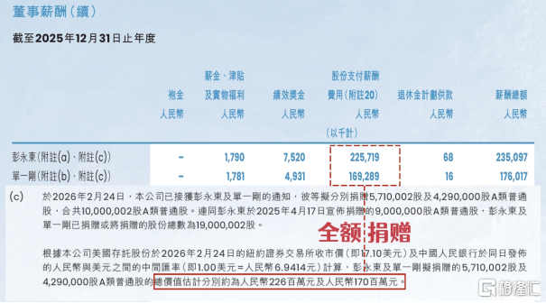 4月24日,贝壳发布2025年年度报告显示,公司联合创始人彭永东和单一刚已将2025年限制性股票全额捐赠,税后资金用于为居住行业服务者及其家庭提供医疗保障、子女教育等,为应届毕业生提供支持,并设立“健康家贝守护金”。 报告公开披露,彭永东2025年账面薪酬总额为2.35亿元,其中股票2.26亿元为2022年贝壳港股上市时为满足合规要求授予的限制性股票摊销,相关摊销金额同比下降42%。根据会计认定的...