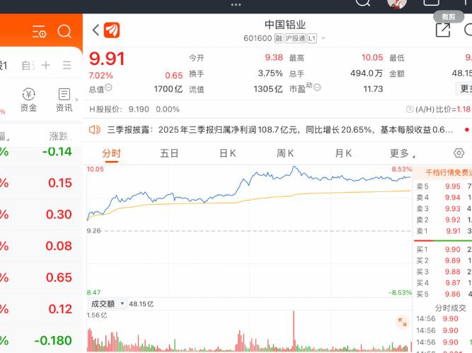 资讯 中国铝业前三季净利逾108亿元,第三季度单季同比增超九成