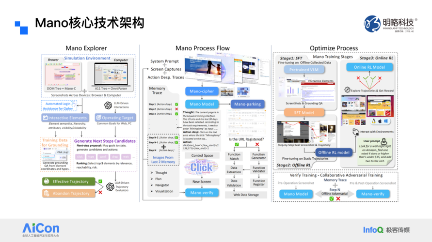 2025年12月19日,明略科技创始人吴明辉,在AICon全球人工智能开发与应用大会上,分享了《可信Agent的规模化之路》。2020年,他带着千人团队押注智能体,试图在企业微信生态里打造AI助理,结果因技术供给超前于市场需求,走过了一段曲折的探索期。四年后,他选择了一条更务实的路:放弃“全自动”幻想,瞄准GUI自动化,用72B模型在BUA、CUA榜单达到了SOTA水平。 在这场演讲中,他指出一个...