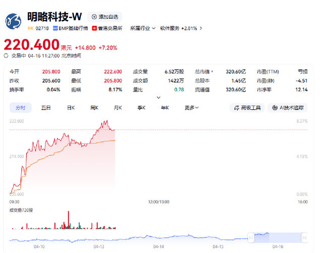今日早盘,明略科技-W(02718.HK)放量拉升,盘中最高触及222.6港元,涨幅超8%,总市值一举突破320亿港元关口。 这波凌厉走势并非偶然。在昨日AI应用板块整体回调的背景下,明略科技逆势获资金抢筹,恰恰印证了市场共识正在发生微妙转变——当资金开始从纯概念炒作转向具备真实技术壁垒和商业化落地能力的标的,明略这种手握13个SOTA、率先实现千人员工级Agent协同的硬核玩家,必然迎来估值修复...