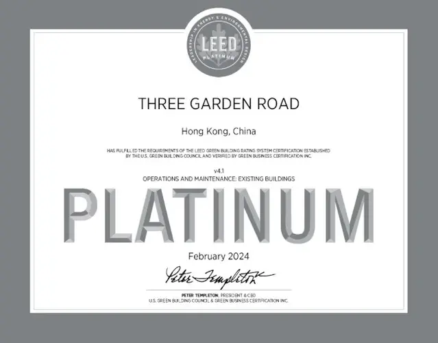 花园道三号以全港最高评分获LEED v4.1铂金级认证