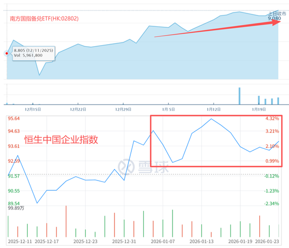 在上月文章《今天唯二两只防守住了的小众红利基金》中,我给大家提到2个对内地投资者来说比较小众的红利类ETF: 1、$南方东西精选(HK|03441)$:跟踪的目标指数构成为“65%港股高股息+35%美股自由现金流”,属于是港美跨境红利类ETF,最大特点是差异化配置了“美股现金奶牛”。我是去年12月11日发的文章,至今(2026.1.23)一个多月时间,南方东西精选ETF上涨7.21%,而同期不少港...