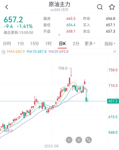 原油今天下跌1.41%,尽管并不是波动最大的品种,但原油仍然是最瞩目的品种。随着巴以冲突局势的深入,国际原油价格也实现反弹,但是内盘原油价格仍然偏软。走势会跟随国际原油价格反弹,还是延续当前内盘下跌的势头,这是目前比较重要的。换言之,如果行情反弹,则走势有望向上去试探680左右的压力位置,而行情如果下跌,则有望向下试探600位置,不管是哪个位置,对于原油来说,波动的幅度都比较大。假期后首日外盘原油...