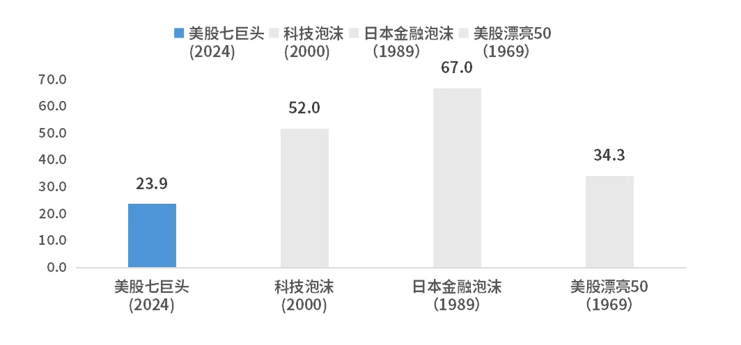觉得国债红利才是价值的,交易的是什么逻辑内核你们自己心里清楚,要不咱们直接开门见山做另一边吧,直接一点。最近有个新产品很棒,美股七姐妹ETF$南方美股七巨头(HK|03454)$,直接定向拥有Alphabet、亚马逊、苹果、Meta、微软、英伟达和特斯拉。我看到的第一个疑问涨这么多了不是泡沫?回溯1960年代的美股漂亮50泡沫、1990年代的日本金融泡沫、2000年代的科技泡沫等历史泡沫时期,...