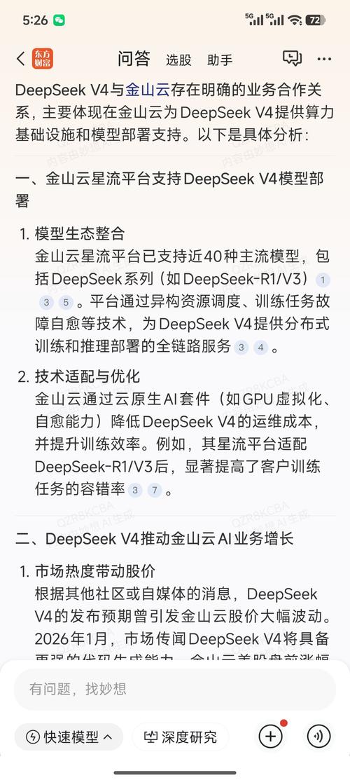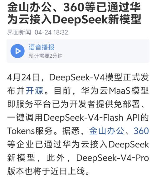 $金山云(HK|03896)$ 4月24日,DeepSeek-V4模型正式发布并开源。华为云MaaS模型即服务平台已为开发者提供免部署、一键调用DeepSeek-V4-FlashAPI的Tokens服务。金山办公、360等企业已通过华为云接入DeepSeek新模型,此外,DeepSeek-V4-Pro版本也将于近日上线。 这DS利好出来好像跟金山云没有太大关系。只能等一季度财报了,这一个月可以看看...