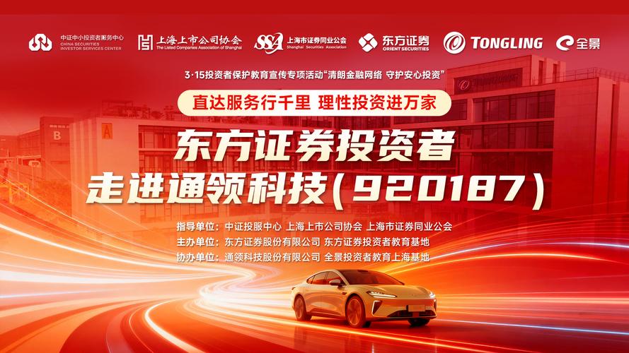 3月16日下午,由中证投资者服务中心、上海上市公司协会、上海市证券同业公会指导,东方证券股份有限公司及东方证券投资者教育基地主办,上海通领汽车科技股份有限公司与全景投资者教育上海基地协办的“东方证券投资者——走进通领科技(920187)”活动圆满举行。活动聚焦国家级专精特新“小巨人”企业发展实践,搭建起投资者与上市公司的深度沟通桥梁,助力资本市场更好地了解汽车内饰赛道的发展潜力。 本次活动吸引约3...
