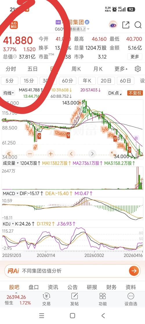 $不同集团(HK|06090)$发现了一个很有意思的事,滴普起飞前一天的价格正好在五日线处。今天不同也在这个位置。今天不同的MACD和KDJ跟起飞前的滴普一模一样,这是意外巧合还是主力故意为之,明天就可见分晓了!
