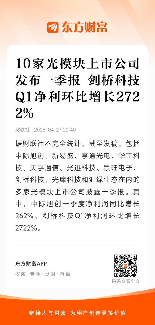 $剑桥科技(HK|06166)$剑桥科技Q1净利环比增长2722%