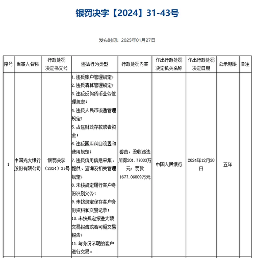 资讯 “罚单雨”未停!光大银行又被罚208万元,重庆分行涉7项违法行为遭央行警告
