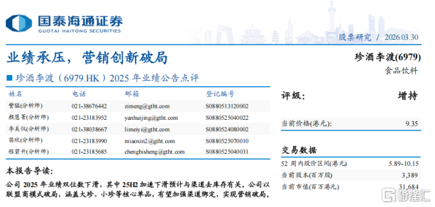 创新破局引关注!国泰海通维持珍酒李渡“增持”评级