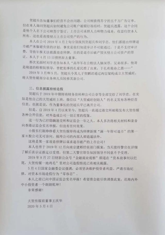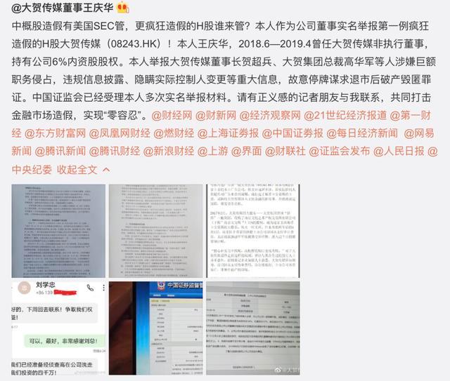 资本侦探原创作者李婷婷怪事年年有,今年特别多,继此前瑞幸自曝造假,北京文化前高管实名举报财务造假后,又一家上市公司大贺传媒上演了类似剧情。5月5日,大贺传媒董事王庆华在微博实名公开举报大贺传媒董事长贺超兵、大贺集团总裁高华军等人涉嫌巨额职务侵占、违规信息披露、隐瞒实际控制人变更等重大信息,故意停牌谋求退市后破产毁匿罪证。大贺传媒创立于2000年,主要提供户外广告服务,包括设计和制作户外广告以...