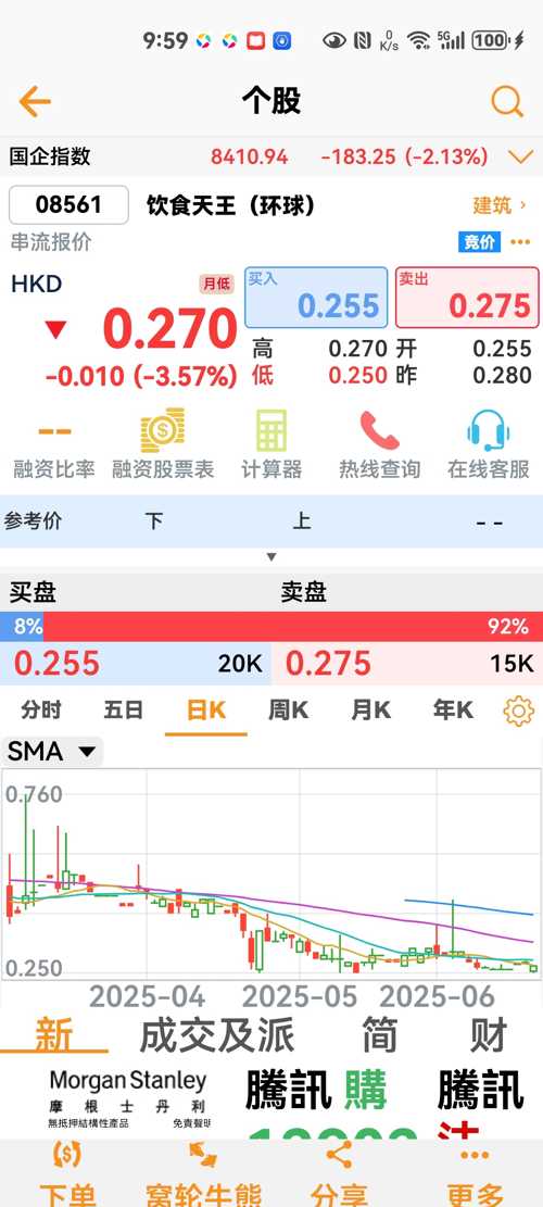 $饮食天王(环球)(HK|08561)$08561的日K线图还是用08619的日K线图。