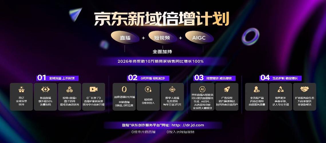 $京东集团-SW(HK|09618)$4月14日,2026京东商家内容大会在北京举办。会上,京东正式发布“新域倍增计划”,聚焦直播和短视频领域,从流量扶持、降本增收、智能提效、生态护航4大维度着手,推出12项扶持举措,全面助力商家健康增长,目标在2026年通过直播和短视频帮助10万新商家销售同比增长100%。 大会同期为品牌颁发2025年度内容生态奖项,海尔、联想、美的、OPPO、飞鹤、宝洁、周六...