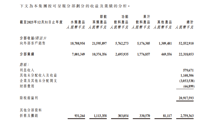2026年3月24日晚,农夫山泉交出了一份令市场瞩目的成绩单:全年营收525.53亿元,同比增长22.5%,首次突破500亿元大关;归母净利润158.68亿元,同比增长30.9%;毛利率提升2.4个百分点至60.5%,拟派息超111亿元。在饮料行业普遍进入存量竞争、价格战愈演愈烈的背景下,这份“双位数增长”的成绩单格外亮眼。 尤其值得注意的是,2025年茶饮料产品以215.96亿元的营收首次超越包...