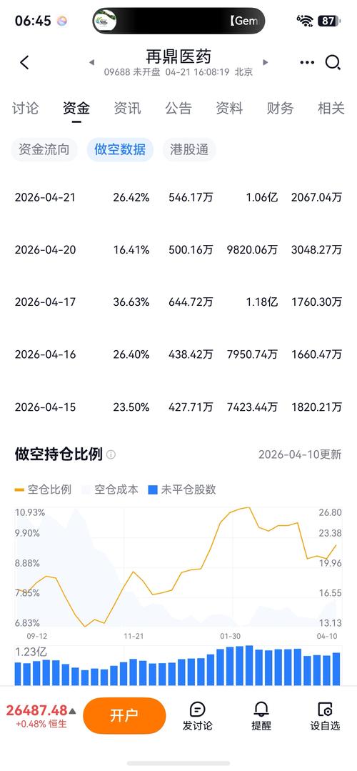 $再鼎医药(HK|09688)$ 再鼎医药(09688.HK)目前的资金博弈呈现出“空头疯狂试探,底仓铁板一块”的鲜明特征。结合最新的卖空数据与CCASS券商筹码分布,我们可以从以下两个维度为您精准拆解:一、做空成本测算:空头被“挂在高空” 近期再鼎医药的做空资金表现得非常猖狂,但成本却并不占优:做空成本区间(18.5-19.5港元):在最近5个交易日(04-15至04-21),再鼎的日均做空比率...