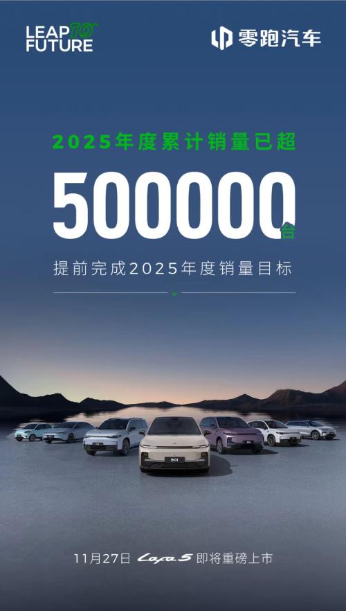 资讯 零跑汽车:2025年累计销量已超50万辆,提前达成年度目标