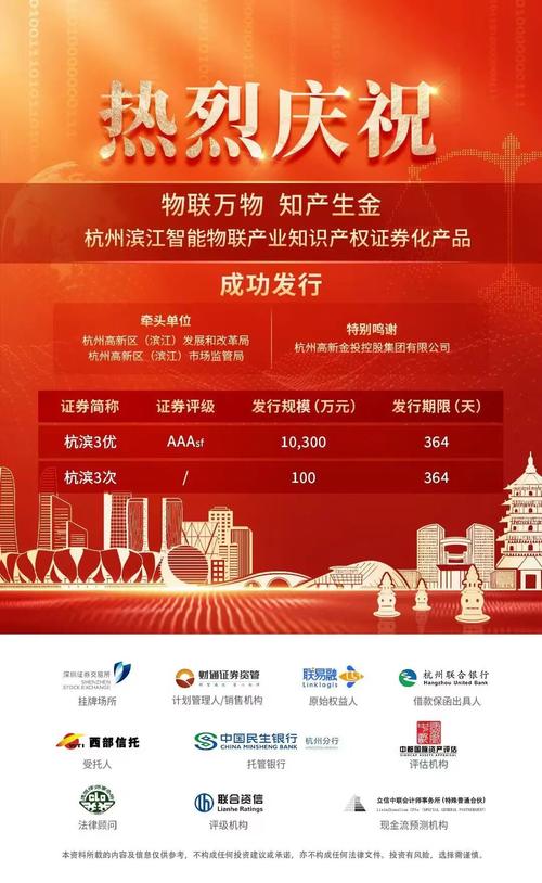 近日,“财通-杭州滨江知识产权第3期资产支持专项计划(科技创新)”于深圳证券交易所成功挂牌发行。作为原始权益人,联易融深度参与项目全流程,联合杭州联合银行、财通证券资管等机构,打造以智能物联产业为主题的知识产权证券化产品,为知识产权金融创新、服务重点产业链高质量发展树立全新标杆。 此次ABS证券化产品入池的基础资产包括高新区(滨江)内的13家优质科创型企业的30项发明专利及3项实用新型专利,依托杭...
