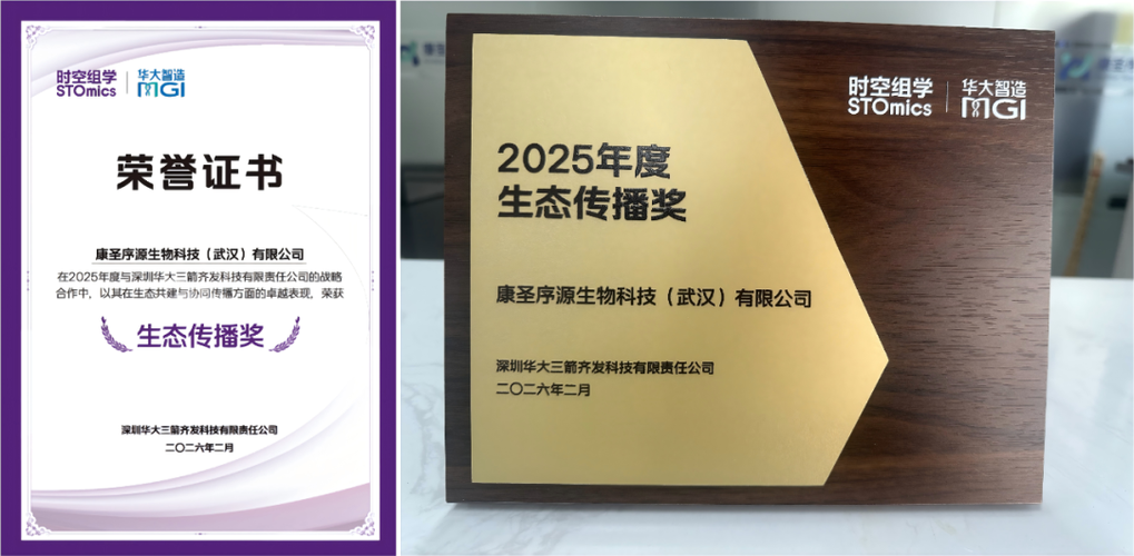 近日,在时空组学领域年度生态伙伴评选中,康圣序源生物科技(武汉)有限公司(以下简称“康圣序源”)凭借在基因多组学的技术推广、科研服务创新及行业生态建设中的突出贡献,荣获2025年度"生态传播奖"! 这一荣誉不仅是对康圣序源专业技术能力的高度认可,更是对其在推动时空组学技术普及、构建行业良性生态方面所做努力的肯定。作为华中地区规模最大的多组学服务中心之一,康圣序源正以硬核实力和创新生态,引领基因多组...
