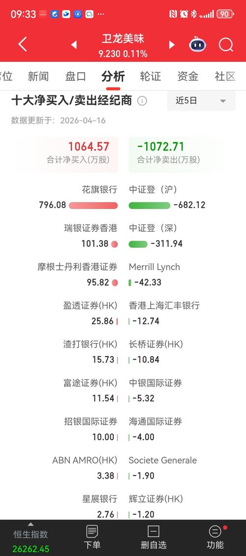 $卫龙美味(HK|09985)$全是南向和散户在割肉,外资吸筹。所以为什么散户永远亏。
