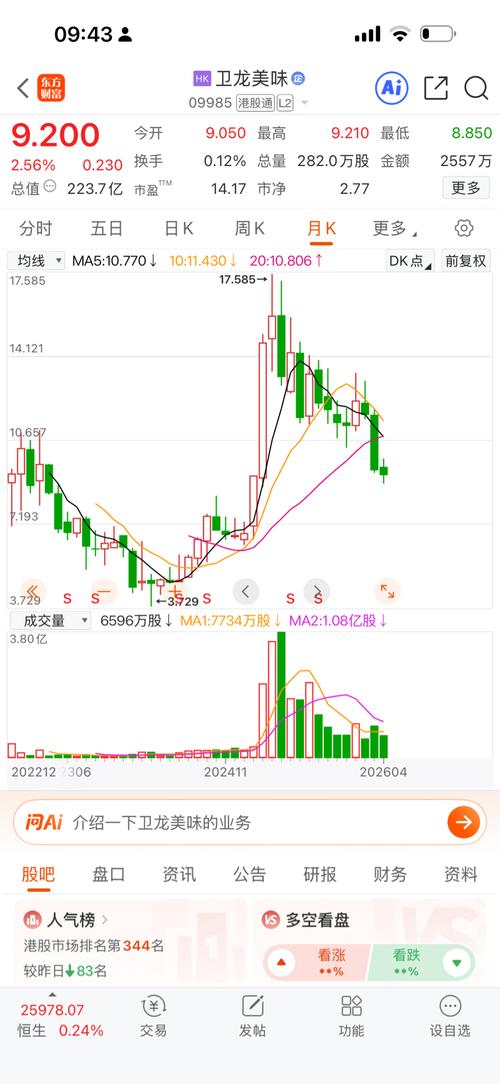 $卫龙美味(HK|09985)$走小菜园的路吗,跌无可跌了才会开启反弹