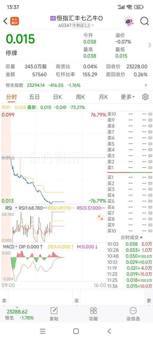 $恒指汇丰七乙牛O(HK|60347)$又要完蛋了吗????