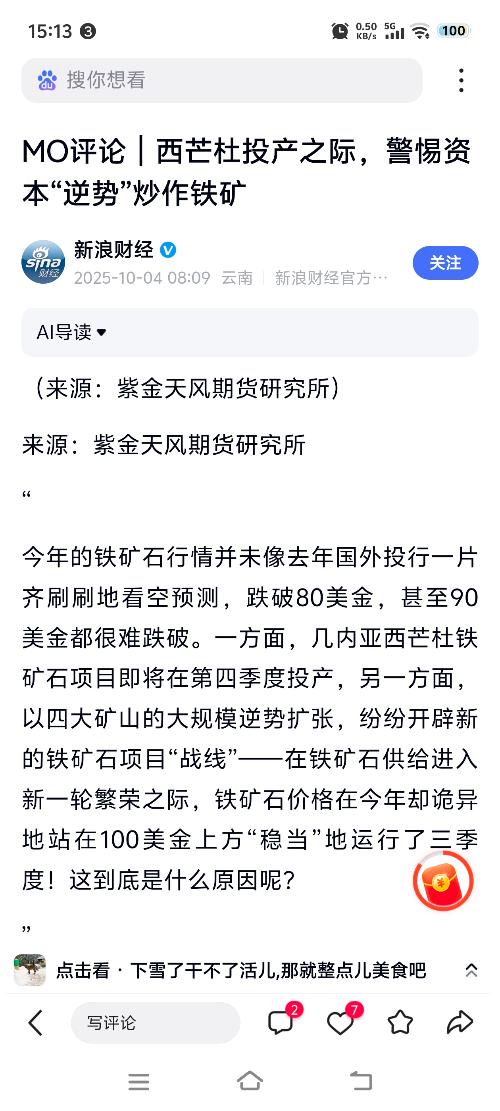 从来凡尘入富贵 发表于 今天 15:13 2次浏览 $铁矿石2601(DCE|i2601)$被人家说准了,果然被逆势炒作 评论赞
