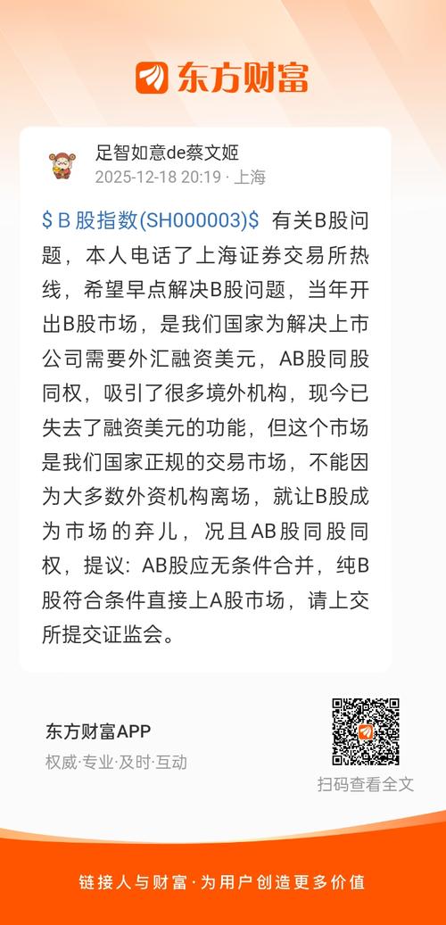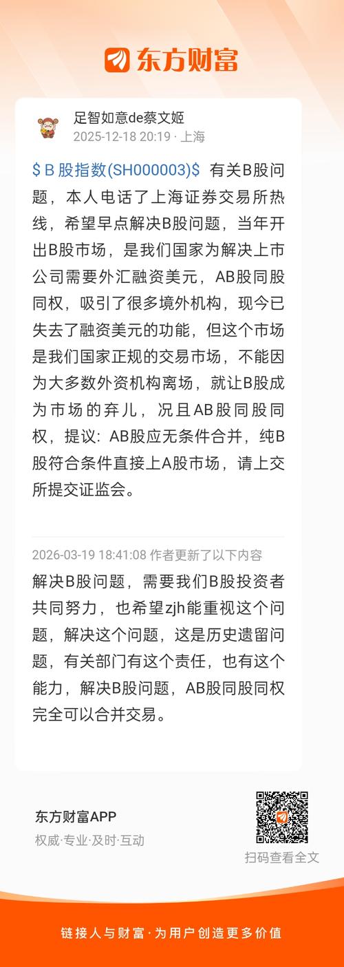 《深度剖析沪深股市AB股并轨刻不容缓势在必行之原因》 ~沪深股市AB股并轨势在必行,其核心是B股已完全丧失历史使命与市场功能,成为资本市场的历史包袱与效率瓶颈,并轨是市场化、法治化、国际化的必然选择。一、B股已无存在价值:功能全面失效-融资功能归零:2000年后无新增IPO,再融资基本停滞,企业早已转向A股、H股或海外募资。-吸引外资使命终结:沪港通/深港通、QFII/RQFII、跨境理财通等渠道...