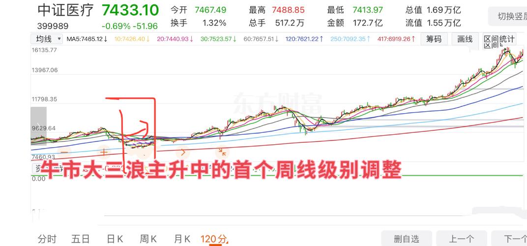 $医疗保健(ISH30178)$发完几张核心图,本来不想发的现在决定停更一段时间反正也被限留,所以所有大趋势走势都在这些图里,没耐心做的就别动,从5400-120周一浪,再到6204,以及7月13号的三浪右侧,直到现在大三浪途中的首个周线级别调整,就是医疗etf都已经盈利一大波了,后续走势直接参考图一,这个调整会磨几个月时间,酒只是杠杆资金去的,目前浮亏3个点,在历史级别的变盘点,另外提示一下,哥...