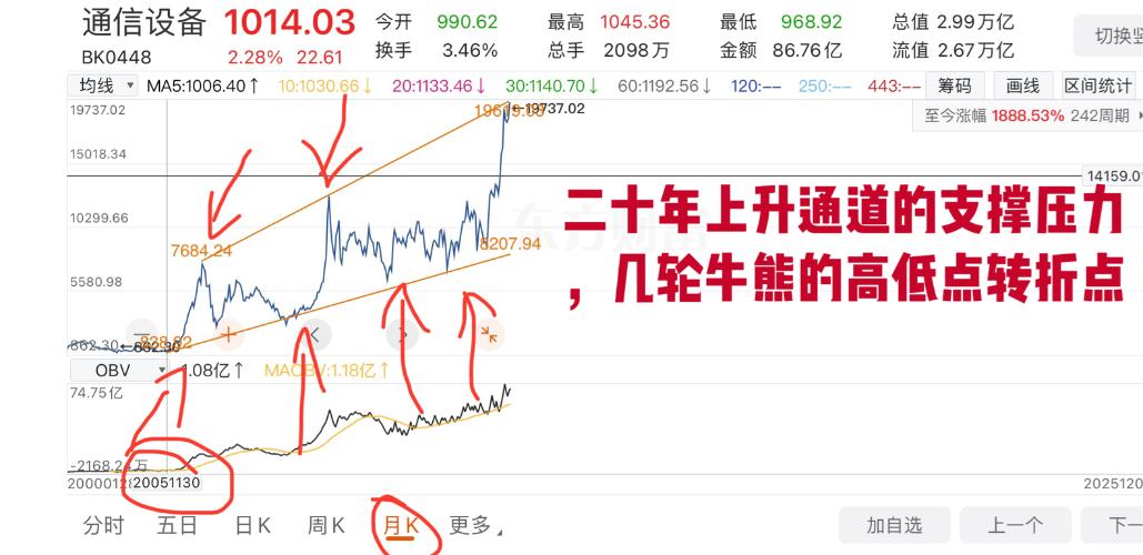 $医疗保健(ISH30178)$三张图,需要重点说下A股行业的牛熊及熊牛转化,目前cpo行业指数运行到二十年月k压力处,9月1号本人提示撤离时是第一次碰此线,目前经历几个月此趋势稍有上移,但未突破,按通道此处是牛熊转化位置,大把二十年上升趋势线下轨行业可以选择,就算月线突破也会有月线级别的回踩确认考验是否是真突破,就和图二那里一样有个回踩确认的过程,但是!图一突破难度极高,和图二有根本性差别在于上...
