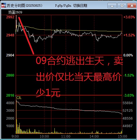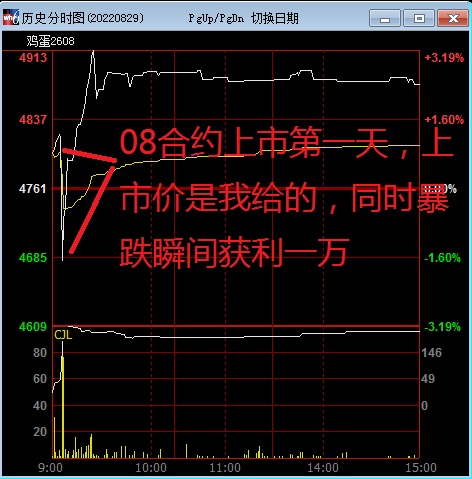 今天行情冲高回落,在我们的预期之中。还是原来的配方,还是熟悉的味道。空头主力利用砸远月,以达到逼迫近月鸡蛋合约下跌的目的。对比05合约3460的价格,01合约3660的价格肯定更香。所以未来两天不排除近月合约走弱的可能。然后到了周五或者下周一,远月近月都跌无可跌,现货价格继续上涨的时候,鸡蛋才会迎来真正的暴涨。今天也是值得庆祝的一天,我又上演了一个名场面。这个名场面可以入选我的职业生涯4大高光时刻...