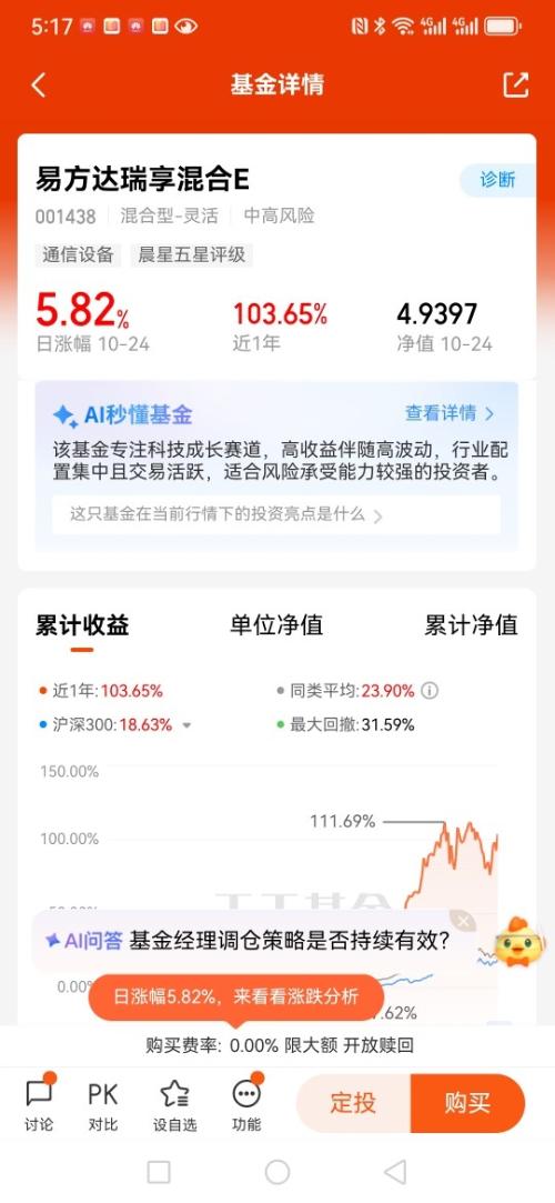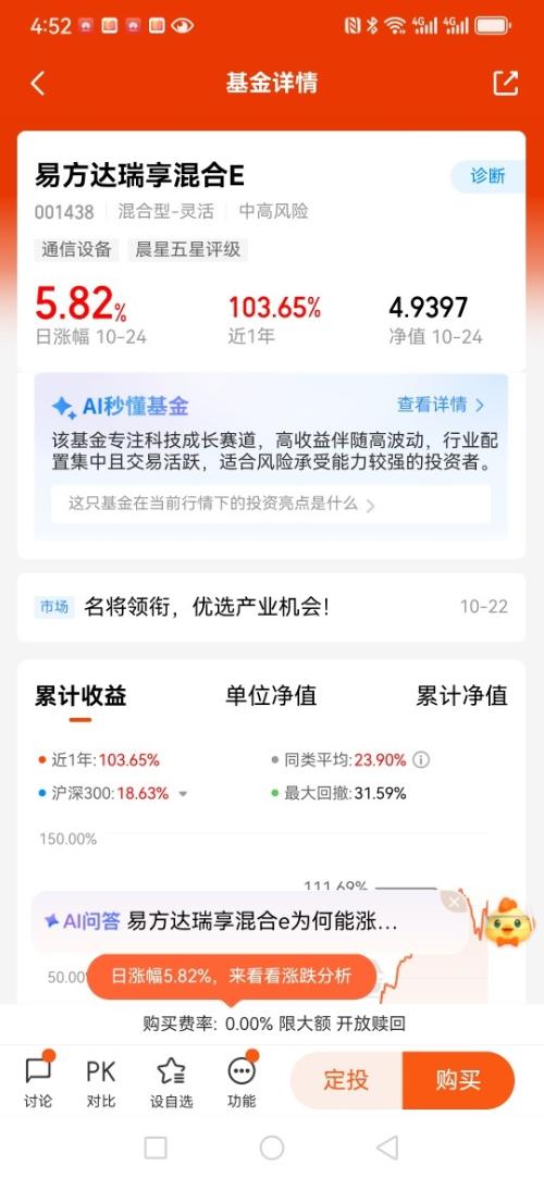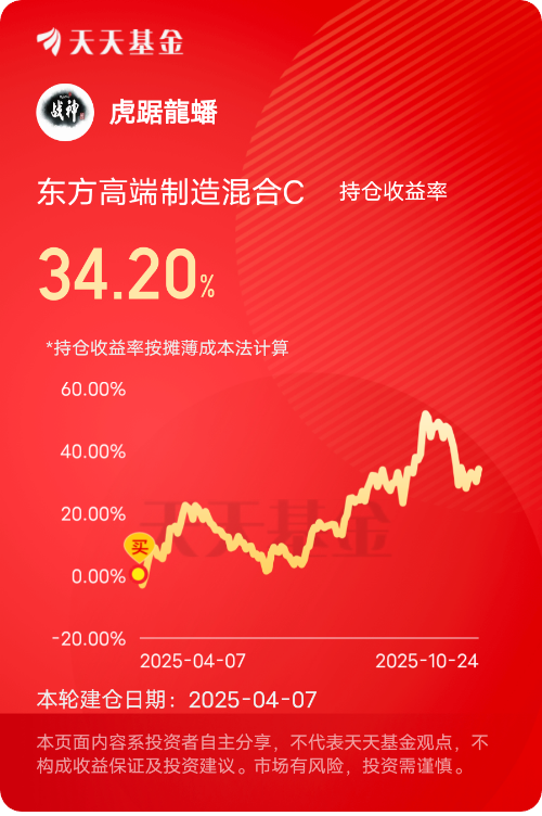 #科技热点摊开业啦#基民小虎定投$东方周期优选灵活配置混合C$快一年了,持有$东方高端制造混合C$半年多了,持有$东方添益债券$$东方臻宝纯债债券C$$东方恒瑞短债债券C$一年多了,收益和体验都非常好!将会继续定投、买入东方基金产品,并长期坚定持有! 基民小虎非常看好科技热点投资机会,尤其是人工智能方向,$东方人工智能主题混合C$已加自选会持续关注,并适时开启每周定投。个人觉得,科技、周期赛道都会...