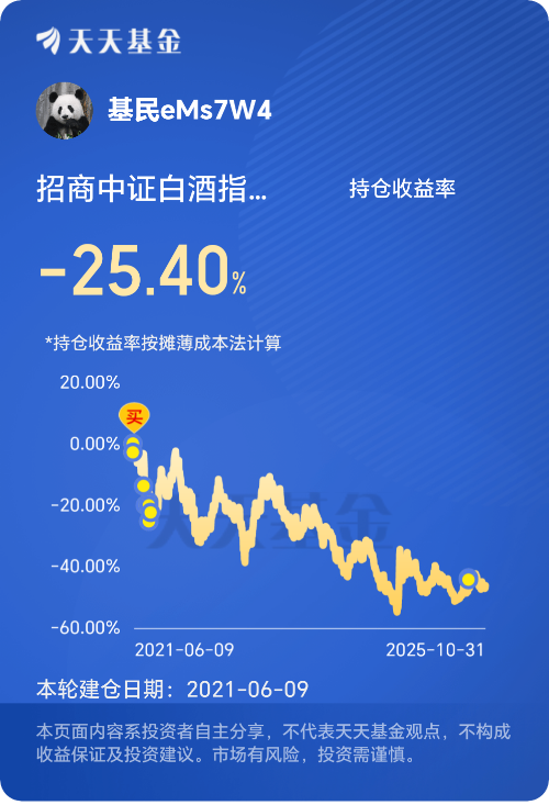 $招商中证白酒指数(LOF)A$#晒收益# #11月基金投资策略#$招商中证白酒指数(LOF)A$在这牛气冲天的时刻,我选择了招商中证白酒指数(LOF)A基金。它犹如一只凤凰,引领着我们穿越牛市,迎接新的机遇在这牛气冲天的时刻,我选择了招商中证白酒指数(LOF)