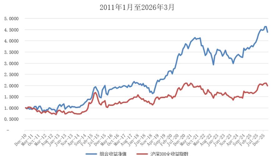 一、2026年第一季度投资总结截至2026年第一季度末,实际组合包括场内组合、场外基金组合的年内整体收益是-2.21%。实际组合从2011年初至2026年第一季度末净值是从1元至4.3945元。年化收益率是10.19%。沪深300全收益指数从2011年初至2026年第一季度末净值是从1元至1.9880元。年化收益率是4.61%。二、本期持仓总结(一)场内组合持仓:场内组合持仓前30只。金选300、...