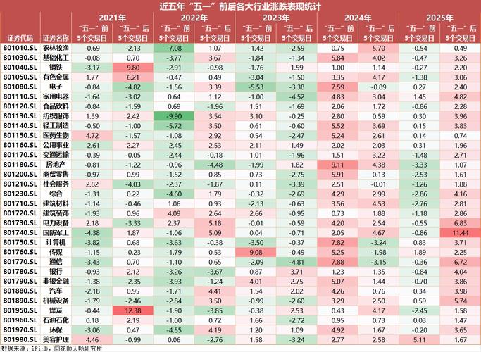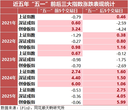 近年五一前后A股市场规律: 节前缩量蓄势,节后将明显改善! 中小盘优于大盘,创指弹性较好! 节前炒消费,节后多科技和军工!