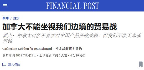 近日,加拿大的知名财经媒体《金融邮报》发布了一篇署名评论,狠狠地抨击了中国,呼吁加拿大尽快对中国的钢铁、铝和电动汽车征收高关税。该文作者为CatherineCobden和JeanSimard,CatherineCobden是加拿大钢铁生产商协会首席执行官,而JeanSimard则是加拿大铝业协会首席执行官。#欧盟按原计划对中国电动汽车加征关税#加拿大两大行业协会集体发声,这代表了加拿大相关...
